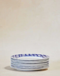 Vintage Blue Checkered Dinner Plates (Set Of 10)