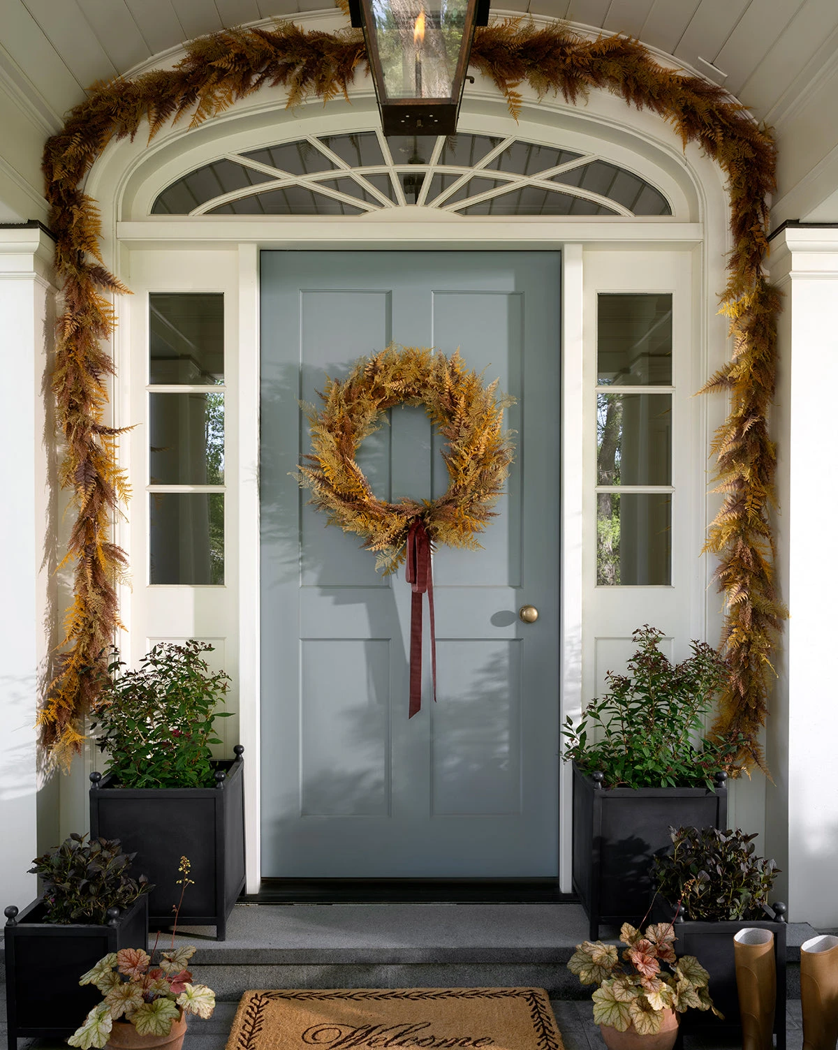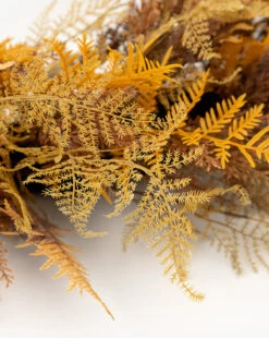 Airy and organic, the 30″ Faux Golden Fern Wreath brings a refined touch of fall to your entryway, mantel, or dining space. Featuring delicately layered fern fronds in warm golden tones, its natural movement and generous scale create a soft, seasonal statement—no upkeep required.