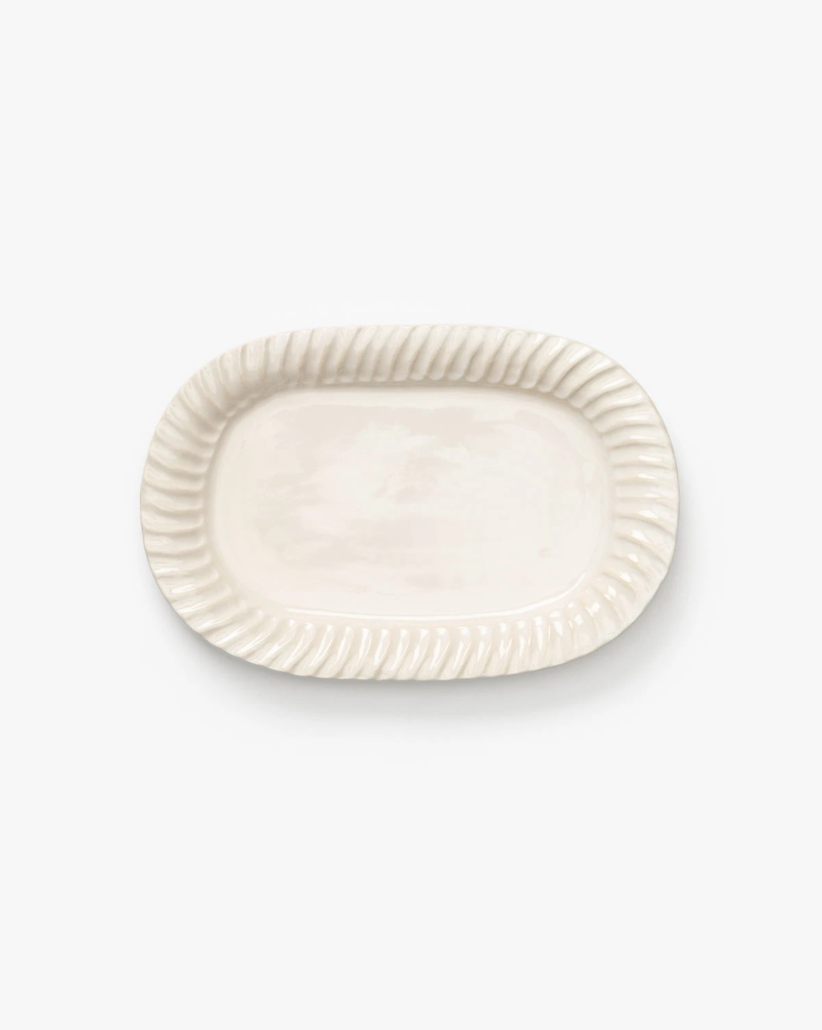 With a sophisticated textured border, the Adalina Creamy White Tray is a charming addition to your table settings. Crafted from stoneware with a white glaze, the serving tray is versatile and timeless. Â