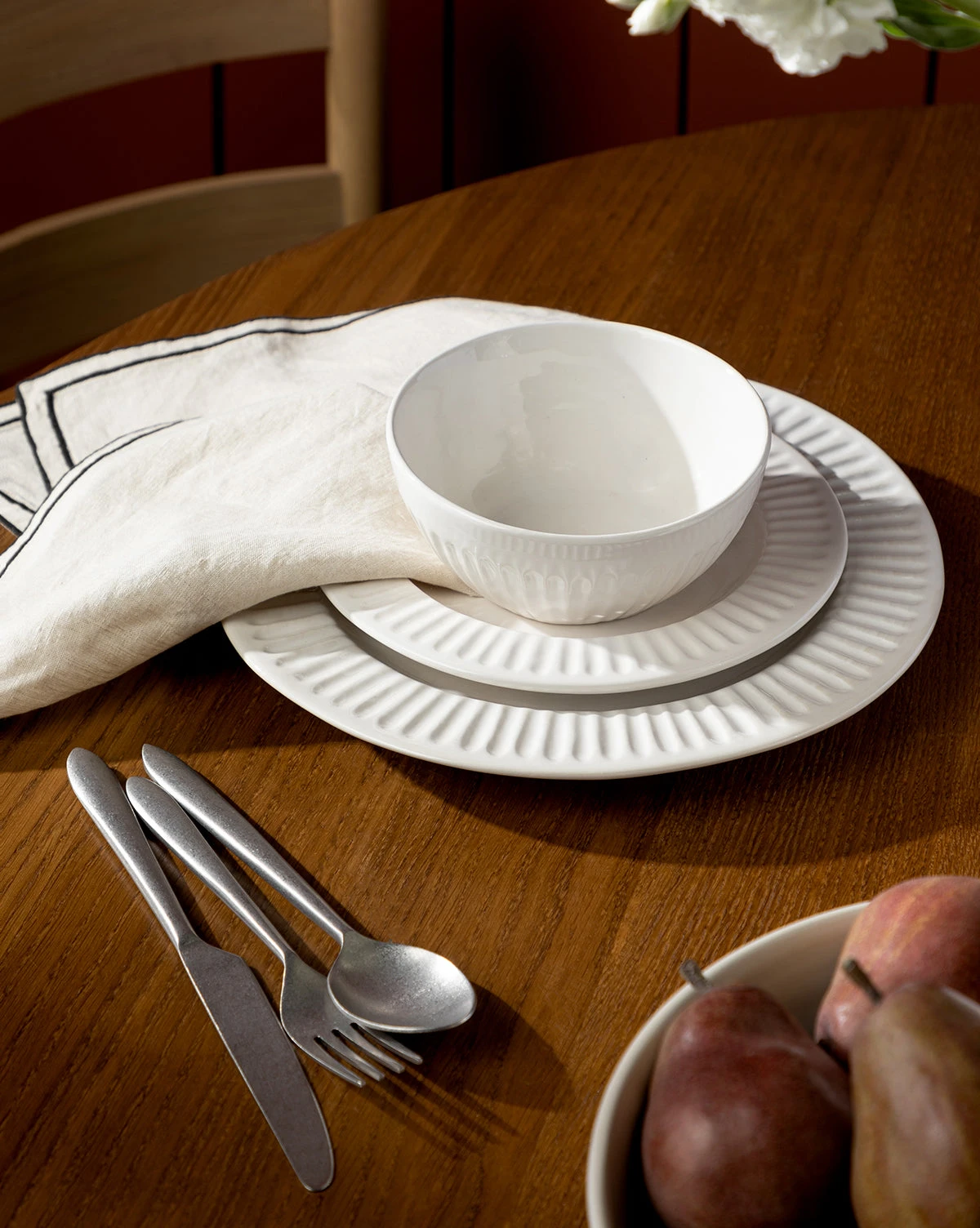 When designing the Adele Collection, we wanted to create ceramic pieces that are timeless and lasting while staying detailed and expressive. With fluted detailing on each piece and a solid white finish, the Adele Collection brings timeless design to the table and serves as a blank canvas for the food and memories you share.