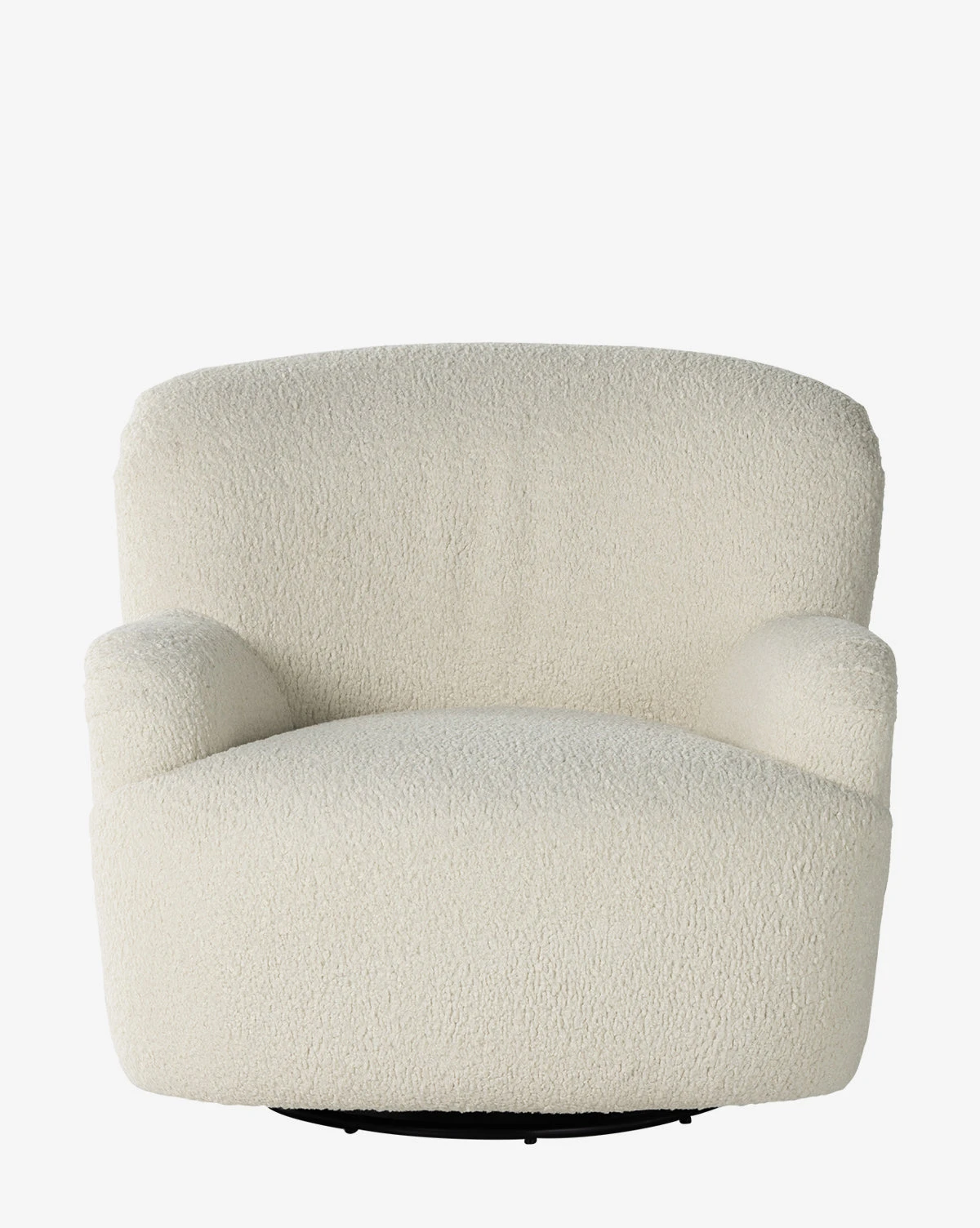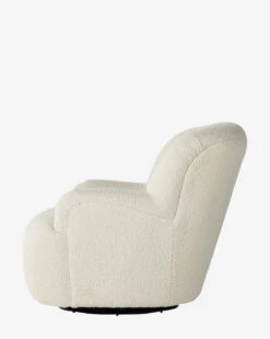 Textural and inviting, the Adelia Swivel Chair has either a natural or camel shearling upholstery for a neutral and plush lounge chair. The high wing back is complemented by classic softly rolled arms, while the swivel provides contemporary versatility.