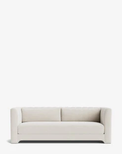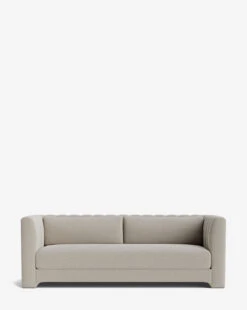 Taking inspiration from the Hollywood regency style, we designed our Agatha Sofa 90″ with sophisticated lounging in mind. Its curved form and channel tufting display masterful craftsmanship, while its single seat cushion design invites simple styling. From the bench –made frame to the feather and down cushions, this sofa is the epitome of luxurious comfort. Customizable in a wide array of fabrics, you can make this handcrafted sofa your own.