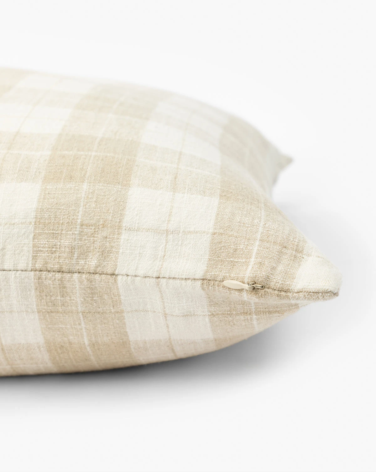 With a plaid motif in tan and white, the Aimee Pillow Cover brings both intricacy and subtle elegance to your pillow vignettes. Made from linen, the luxurious feel of the pillow cover is inviting in any setting.