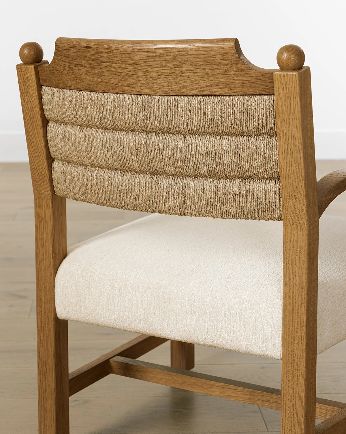 Vintage-inspired and crafted with a blend of mixed materials, our Alberta Lounge Chair balances both traditional and modern aesthetics. The honey oak finished frame and textured back woven with seagrass bring a natural feel to the wooden lounge chair’s classic structure. Upholstered in soft and resilient cotton-linen performance blend, the seat offers depth for a generous and comfortable sit that invites you to relax and settle in. Styled in pairs or as a singular accent piece, it brings a sophisticated yet approachable element to your home.