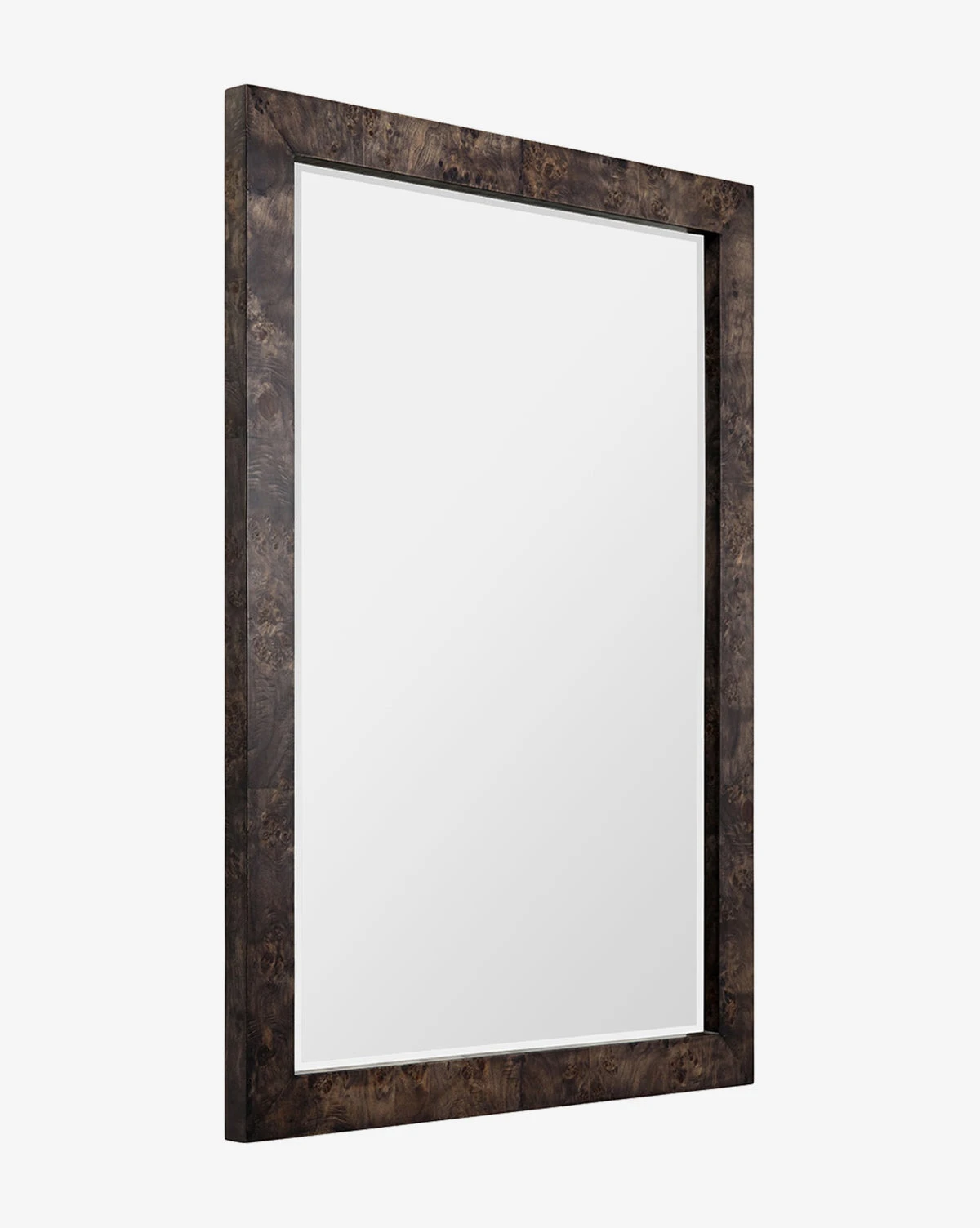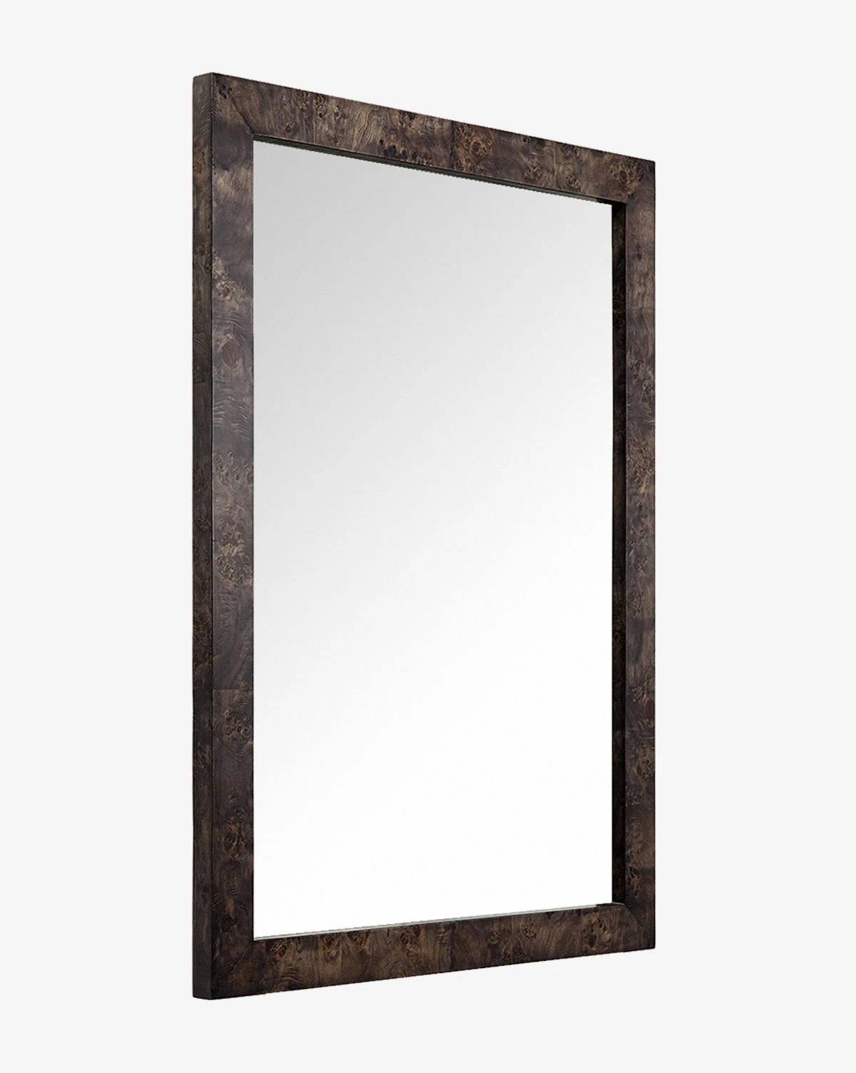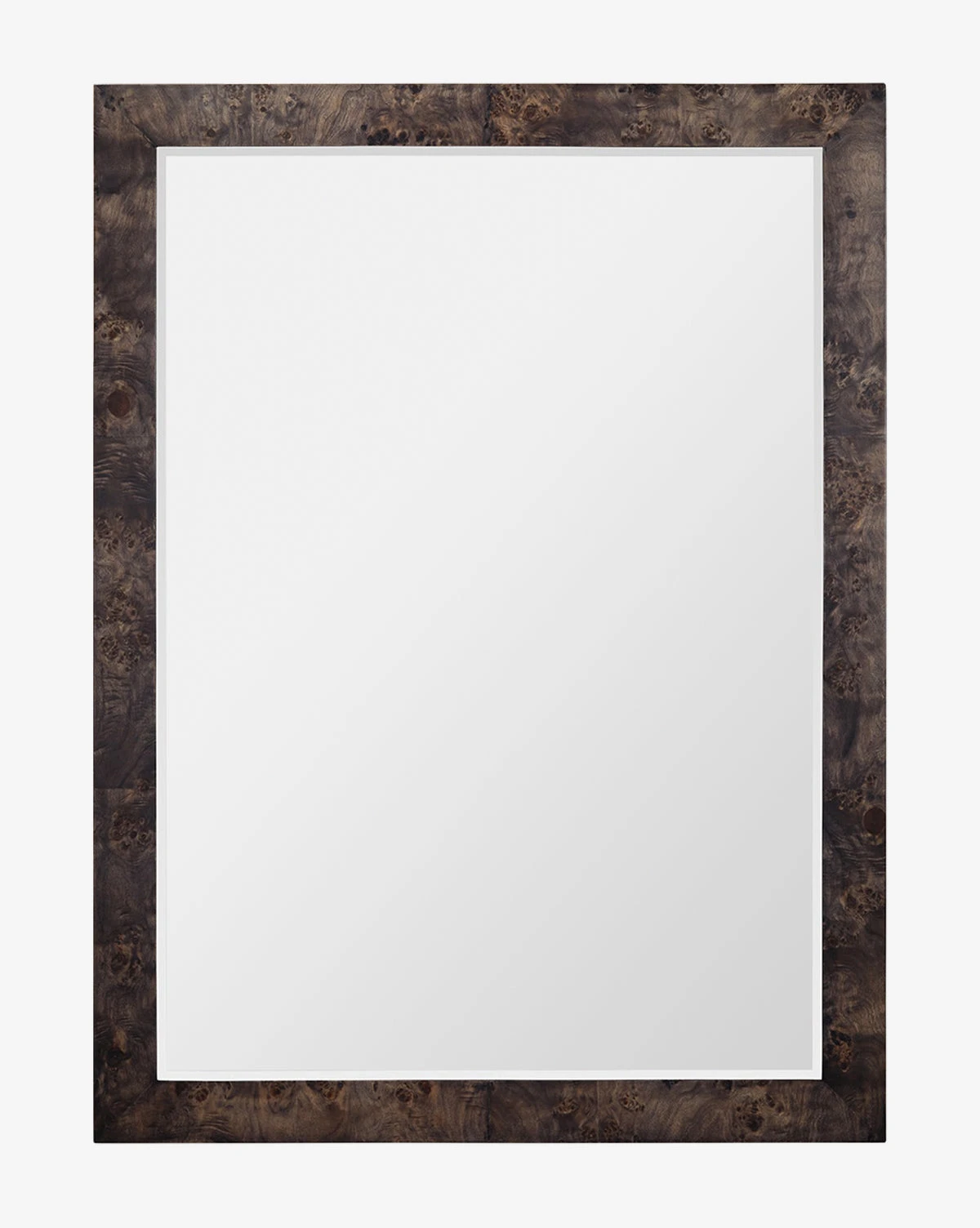 In a rich color, the Alexia Rectangular Mirror is a statement piece. Its frame that shows off the unique pattern of burl wood elevates your decor in any room, reflecting nature and amplifying light throughout the space.