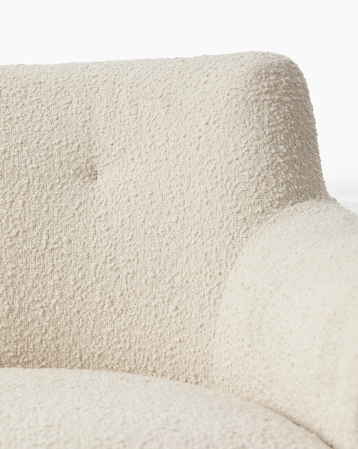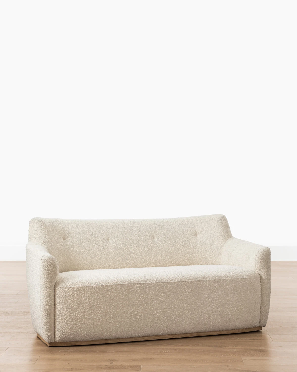 The broadset Alford Settee is upholstered with playful cream tones. Its silhouette is dense, while its form uses soft, curved lines to add a feminine, graceful quality to the piece. Inviting and approachable, the Alford is a lovely addition to living spaces, or entryways.
