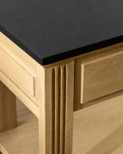 Featuring our exclusive Drift Oak finish and honed granite top, we designed the Ambrose Nightstand to bring a vintage yet organic feel to your bedroom styling. The nightstand adorned with vertical fluting and wire brushed for a textural look and hand feel. With a soft close drawer adorned with a solid brass drop pull, the nightstand is a functional and stylish addition to your space.