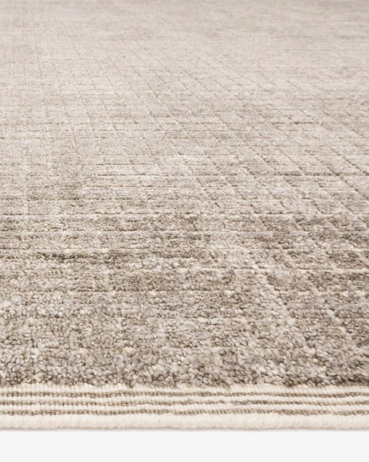 With a simple palette, the Ameglia Stone Wool Rug holds a remarkable level of detail from its careful construction. Hand-loomed, the wool and rayon blend creates a soft feel and durable construction, perfect for styling in the rooms of your home.