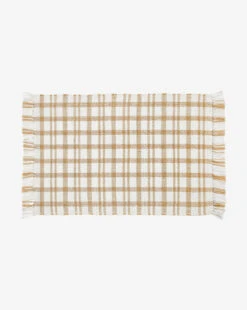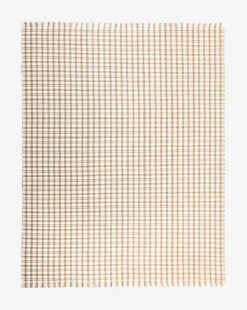In cream and camel plaid, the Amherst Handwoven Indoor/Outdoor Rug uses a crisscross pattern and long, delicate fringe to give warmth and motion to your floors. Soft to the touch and loomed with recycled polyester, this rug has no pile and is easy to clean—perfect for high-traffic indoor or outdoor areas.