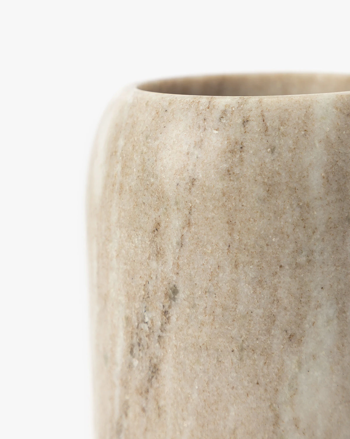 The Athalie Marble Crock draws the eye with its sculpted form. From its smooth surfaces to the natural detail of the beige marble, the crock brings natural materials and depth to your space while holding florals or everyday kitchen tools.