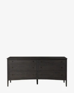 With a clean shape and generous storage space, the Aurelian 6 Drawer Dresser is as stylish as it is functional. Crafted from your choice of aged smoked oak or smoked black oak, this piece features slim tapered legs that provide a modest lift—lending to an elegant yet grounded presence in your home. Â