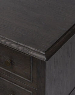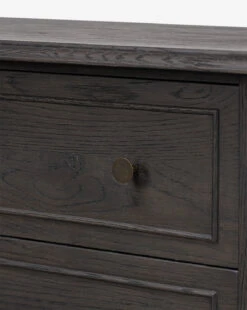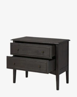 With a clean shape and generous space for bedroom storage, the Aurelian Nightstand is as stylish as it is functional. Crafted from your choice of aged smoked oak or smoked black oak, this piece features slim tapered legs that provide a modest lift—lending to an elegant yet grounded presence.Â