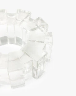 The Bancroft Object brings striking sculptural detail to any surface. Crafted with a faceted, fluted design, its clear form beautifully catches the light, adding subtle shine and modern sophistication. Perfect as a statement piece on a coffee table, console, or styled shelf.