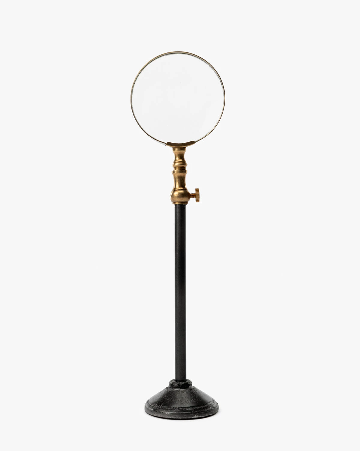 Whether you’re curating an elegant vignette or styling your home with a curiously eclectic aesthetic, our Barnabas Standing Object adds the perfect touch of old-world charm. The standing magnifying glass features a classic silhouette thoughtfully crafted with warm burnished brass and anchored with an iron base and stem.