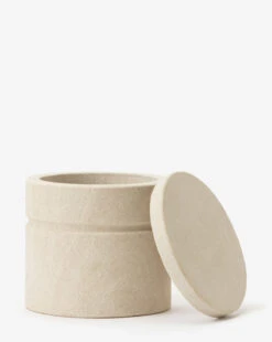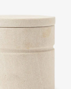 Simple linework and soft, sandstone texture give the Barton Sandstone Canister a captivating form. With its neutral finish and strong cylindrical shape, this decorative piece gives a light, airy addition to entryways or bathroom countertops.