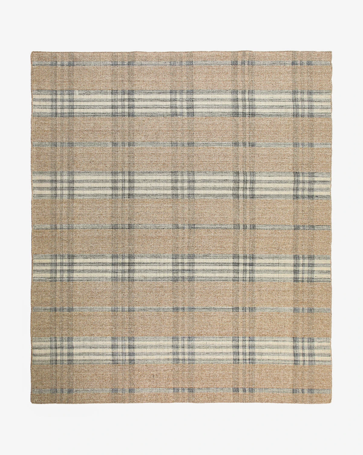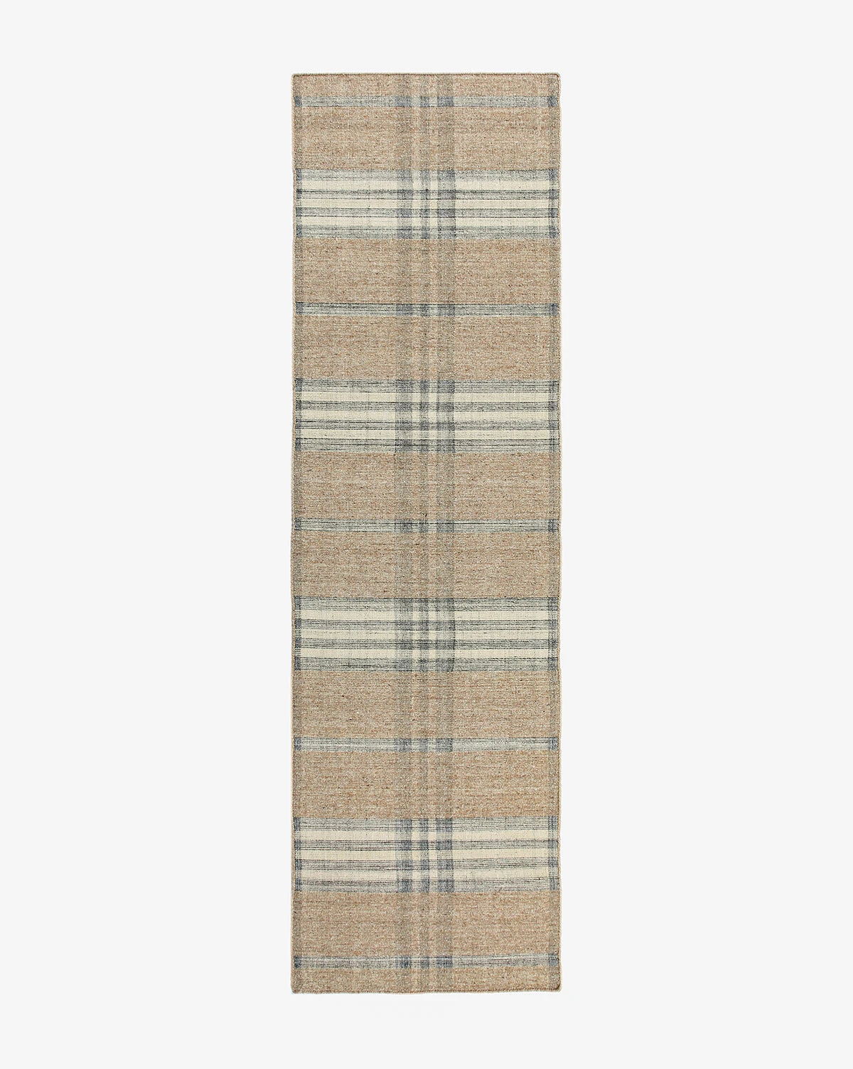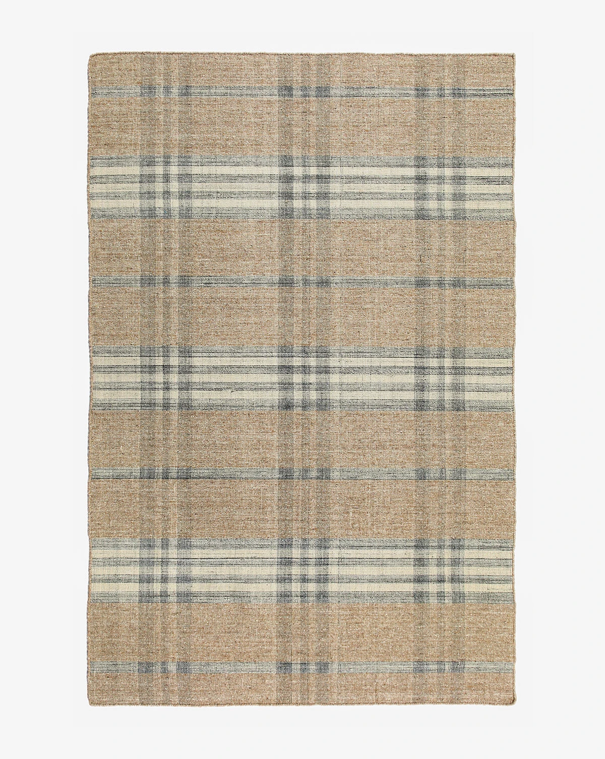 Showcasing navy and white gingham with brown natural stripes woven throughout, the Berkeley Handwoven Indoor/Outdoor Rug exudes an organic elegance and timeless appeal. Crafted with 100% PET, it offers durability while maintaining its uniquely soft underfoot and visual appeal. Its resilience and longevity make it suitable for high-traffic indoor and outdoor areas. Â Â