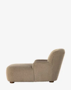 Upholstered in tan shearling-like upholstery, the Berrett Chaise Lounge effortlessly elevates your living space with an inviting feel. Its almond-finished wood feet complement the chaise and bring a sophisticated detail.