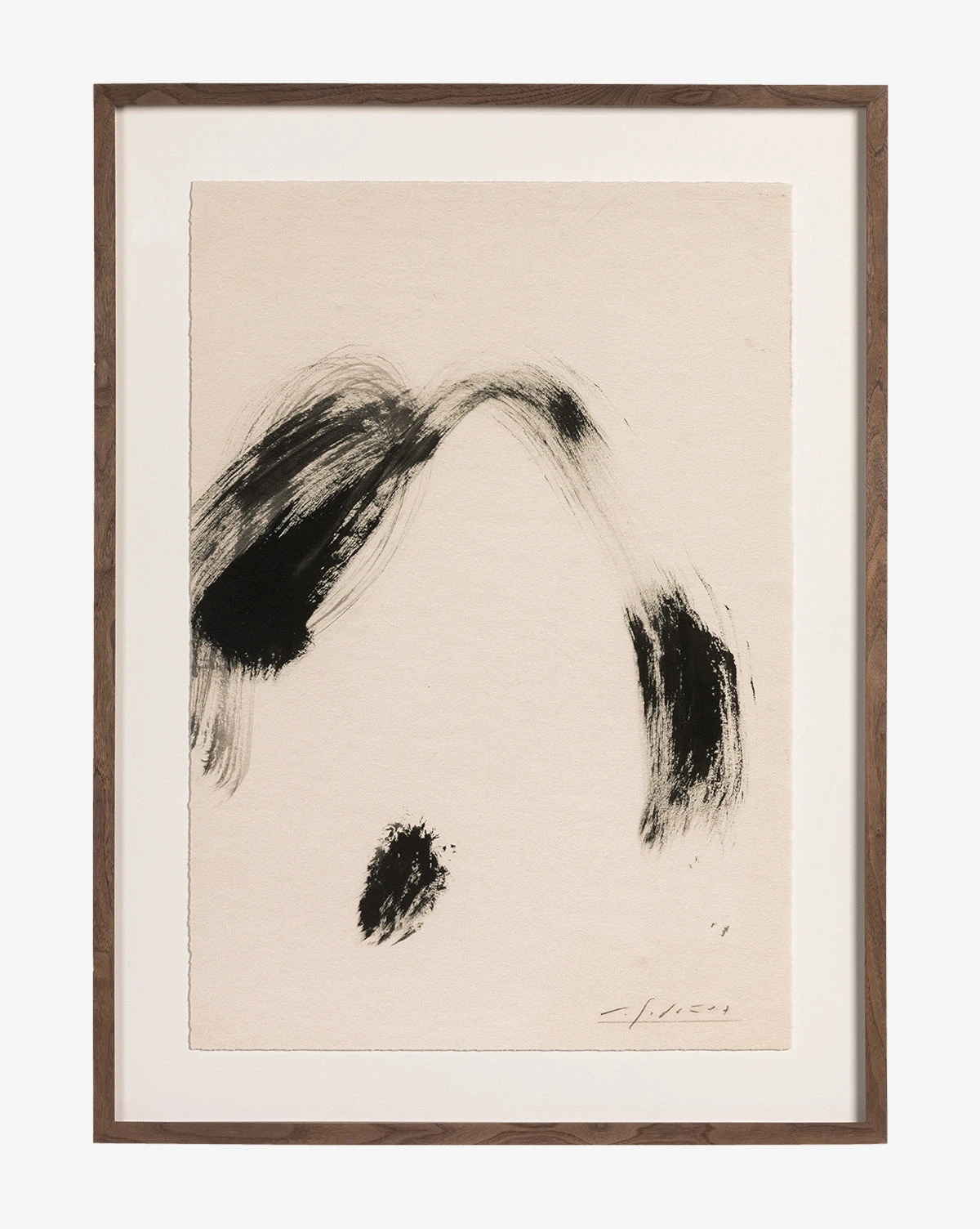 Abstract and full of contrast, Black Paint Stroke is presented on textured fine art paper, depicting bold brush strokes within its intentional composition. Using minimalistic principles, the piece makes a statement among your decor within its sleek rustic walnut frame.