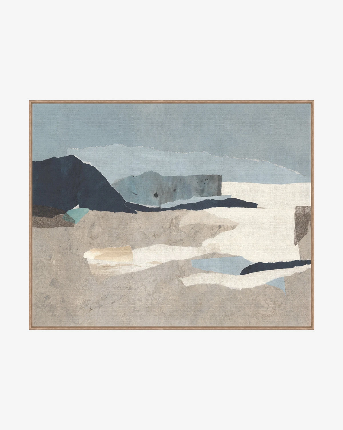 With a collage-style composition, Blue Journey takes inspiration from nature, with a calming blue and natural palette. On a fiber textured canvas, the abstract piece elevates your decor with its details and museum-quality materials. Â