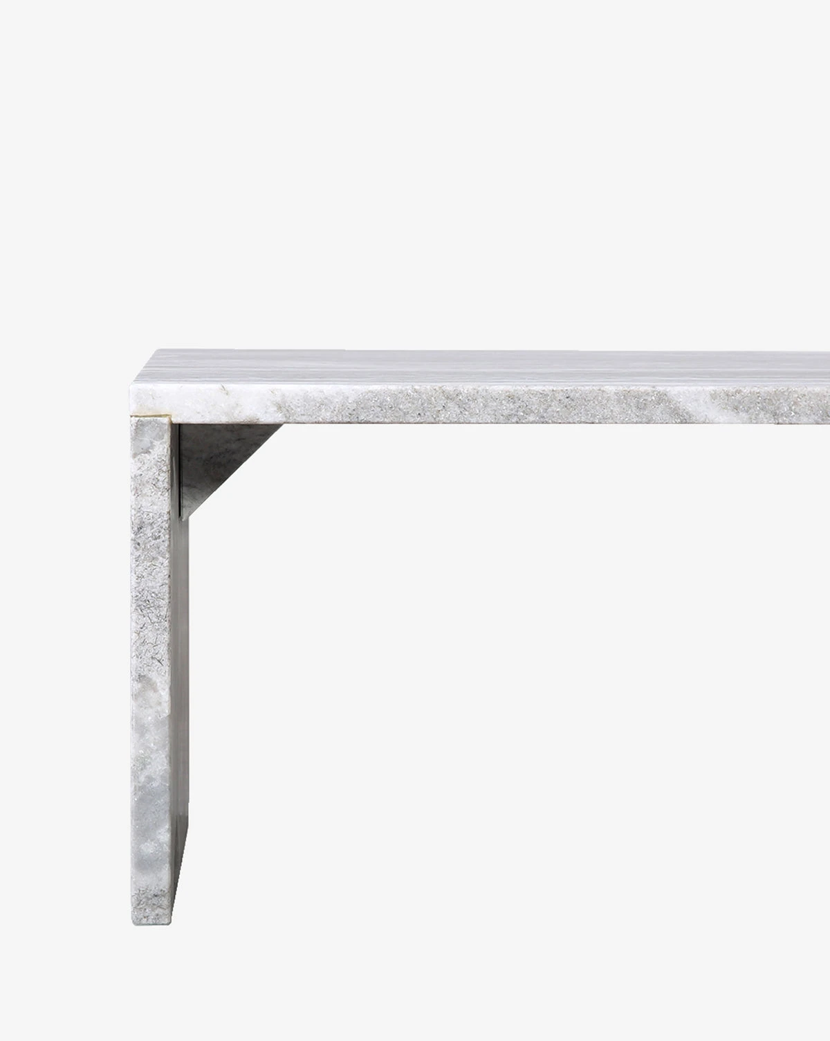 The Boyden Coffee Table is crafted entirely from light gray natural marble, giving it a beautiful organic feel. With a sleek modern shape, the coffee table makes a subtly elegant statement wherever it is placed.
