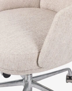 The sleek Brannock Desk Chair is practical and comfortable, giving a modern feel to your home office. With textural light performance fabric or a soft camel cotton blend fabric, the chair features a polished aluminum swivel base with height adjustability.Â