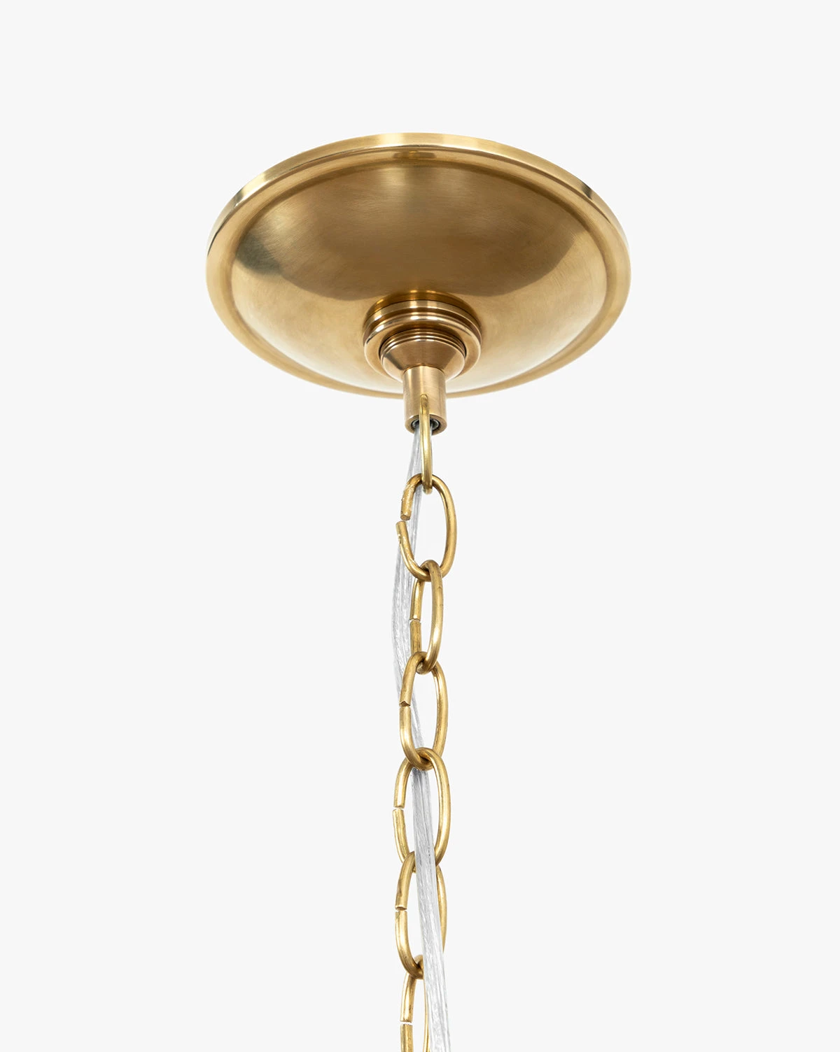 Bold and elegant, our Brigadier Pendant brings new light to a vintage-inspired design. It is beautifully crafted with durable shades that are constructed from metal and an off-white painted satin finish, and softly faceted with an antique brass cap detail. A simple chain balances the expressive form of the shades, adding sophisticated character to lighting designs throughout the home.Â