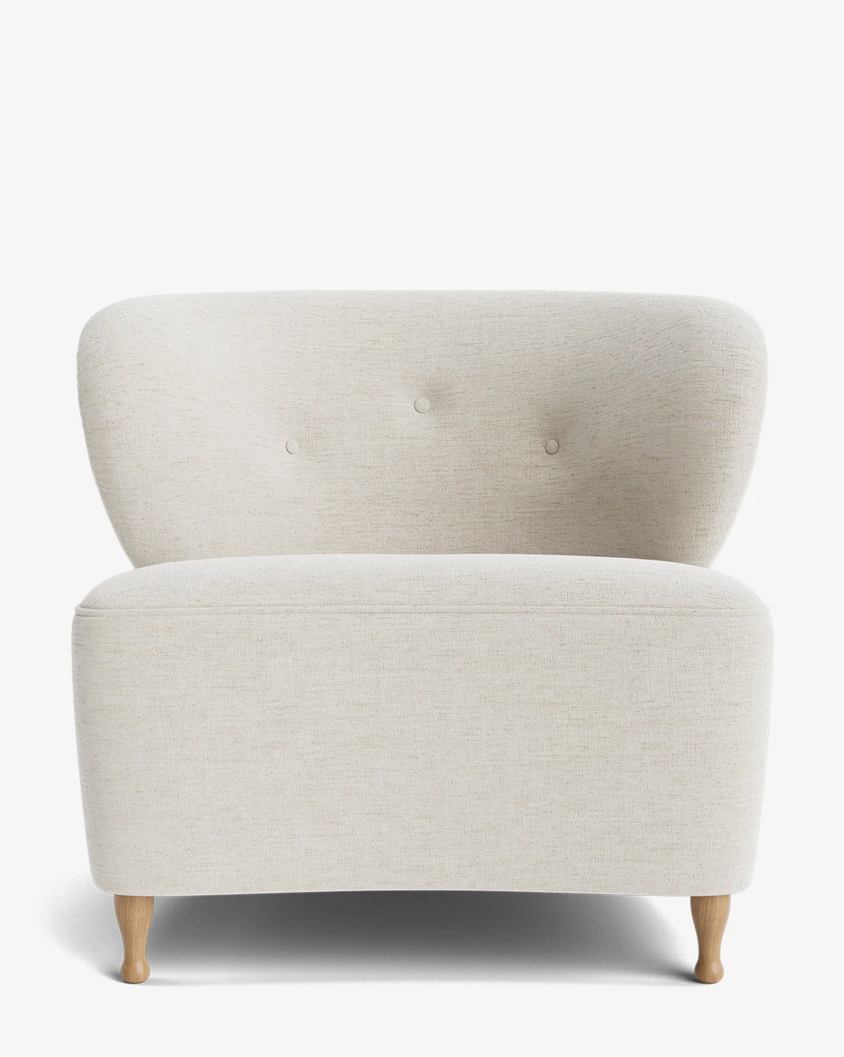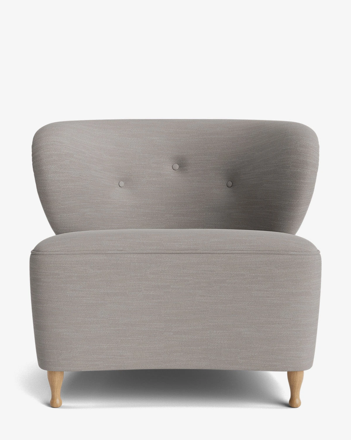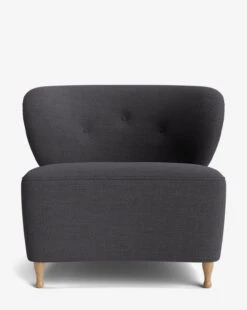 Our Carmella Slipper Chair reimagines a traditional design with subtly modern details. Crafted to bring a luxurious feel to your space, its seat is comfortable and inviting, while its tufted, rounded back feels sophisticated. Featuring red oak legs and your choice of designer upholstery, the slipper chair is a grounding presence in any room.