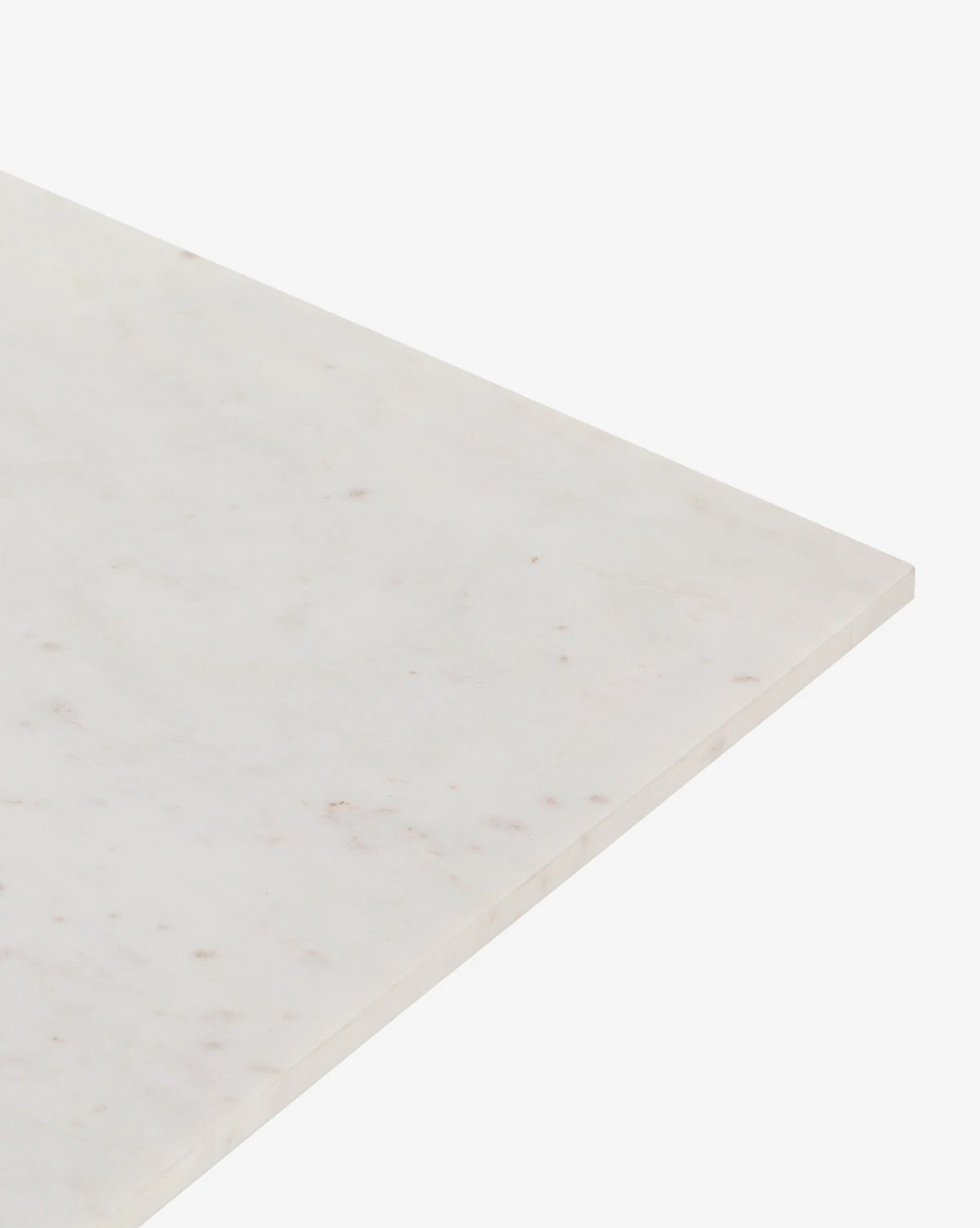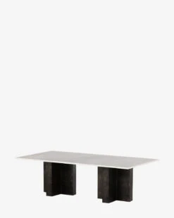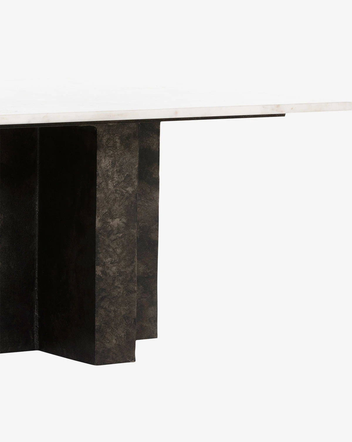 The Carrick Coffee Table uses clean lines and two geometric bases to express its sculptural style. Crafted with aluminum with a black finish and a solid marble tabletop, the bold materials featuring natural details bring an elevated and contemporary feel to your space.