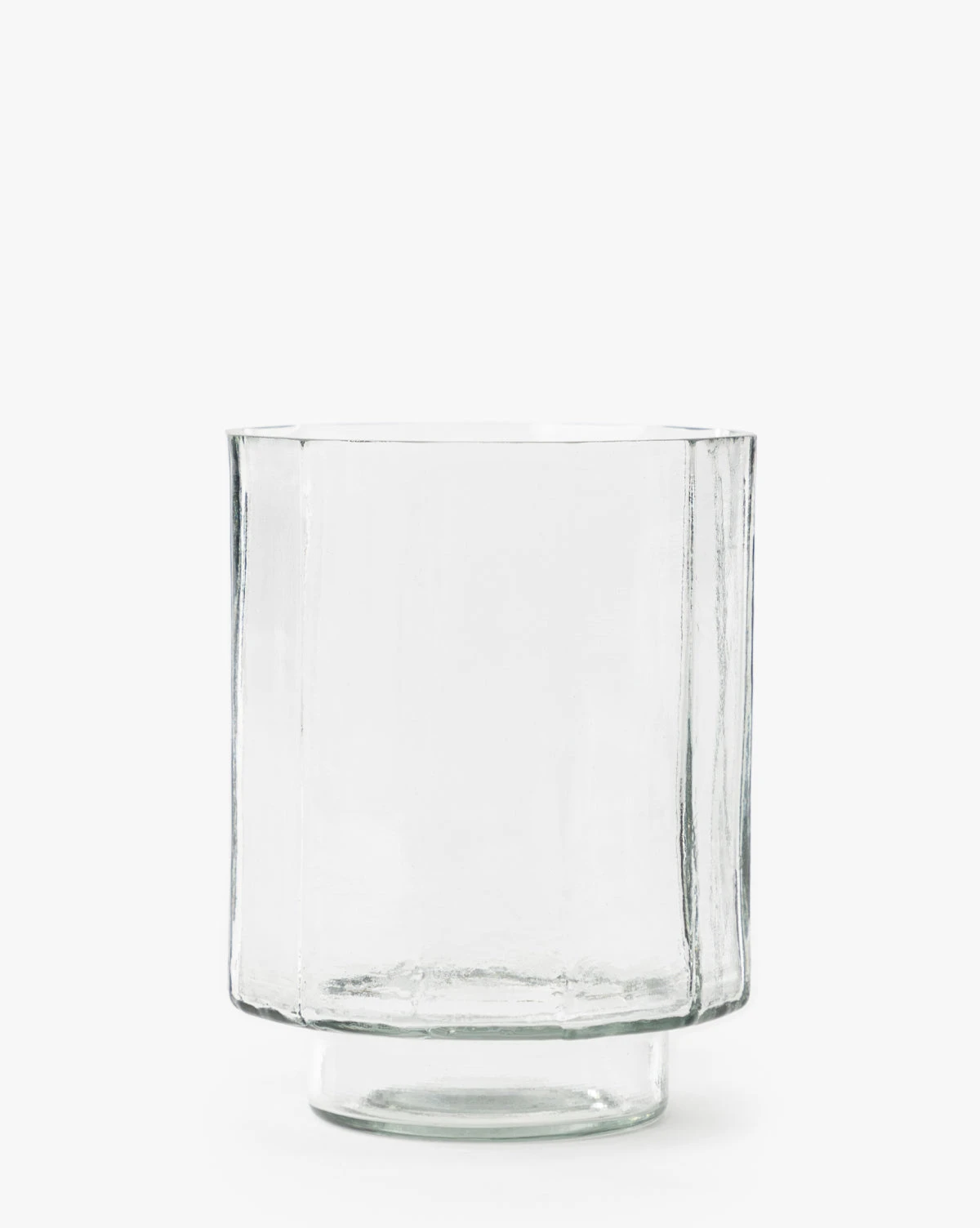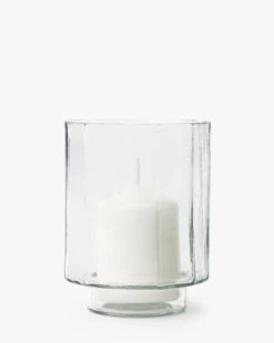 Bring light into your space with the Cassina Glass Hurricane. Faceted with textured glass and formed with a simple and sophisticated base, its uniquely elegant design adds interest to candle displays from countertops to console vignettes.
