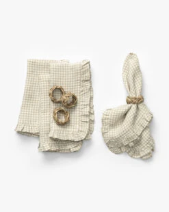Our Catania Linen Ruffle Napkins effortlessly elevate your table setting with a touch of romantic charm. Beautifully tailored and crafted from enduring linen, it has a soft natural texture and airy elegance. Versatile and stylish, this set of napkins is available in your choice of a refined white or a classic yet playful neutral gingham pattern.
