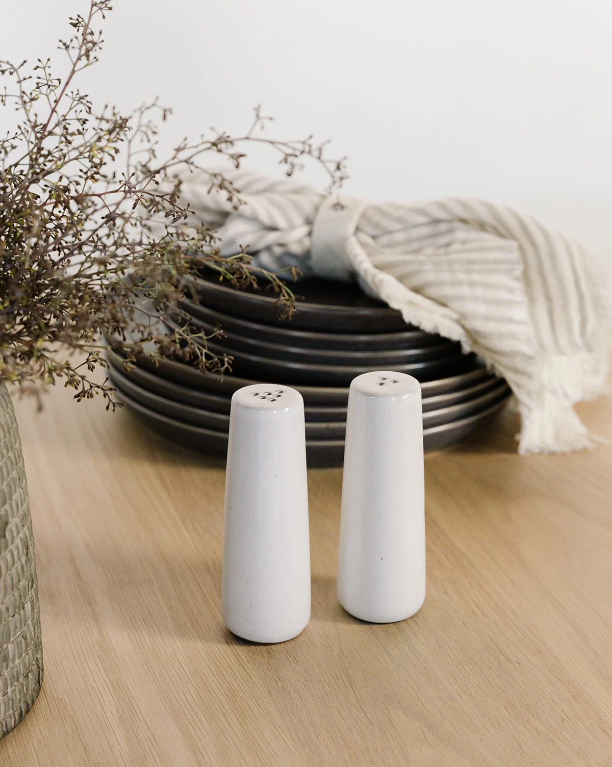 Slender and shapely, these Ceramic Salt & Pepper Shakers blend easily with existing tablescape decor. Whether in use, or simply styled on your kitchen counter, their contemporary shape is both functional and beautiful.