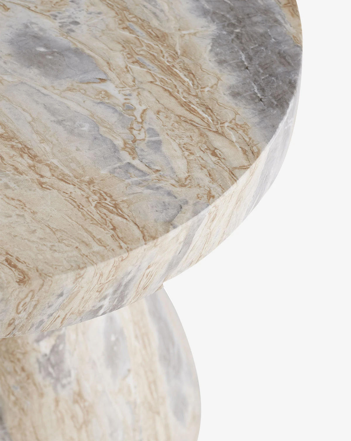 Minimal in stature, the Chance Accent Table is visually weighty and full of character. Made entirely of lightweight concrete, its marble-like facade is created individually with hydrographics, allowing each accent table to be slightly unique.