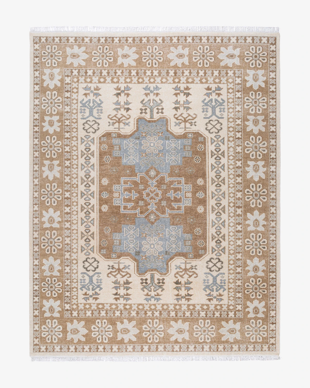 Hand-knotted by skilled artisans with a keen attention to detail, the Chantry Hand-Knotted Wool Rug adds visual interest to your space with its light and welcoming feel. In a natural palette and detailed motif, this rug is crafted from 100% wool, anchoring your room with a comfortable, luxurious feel.