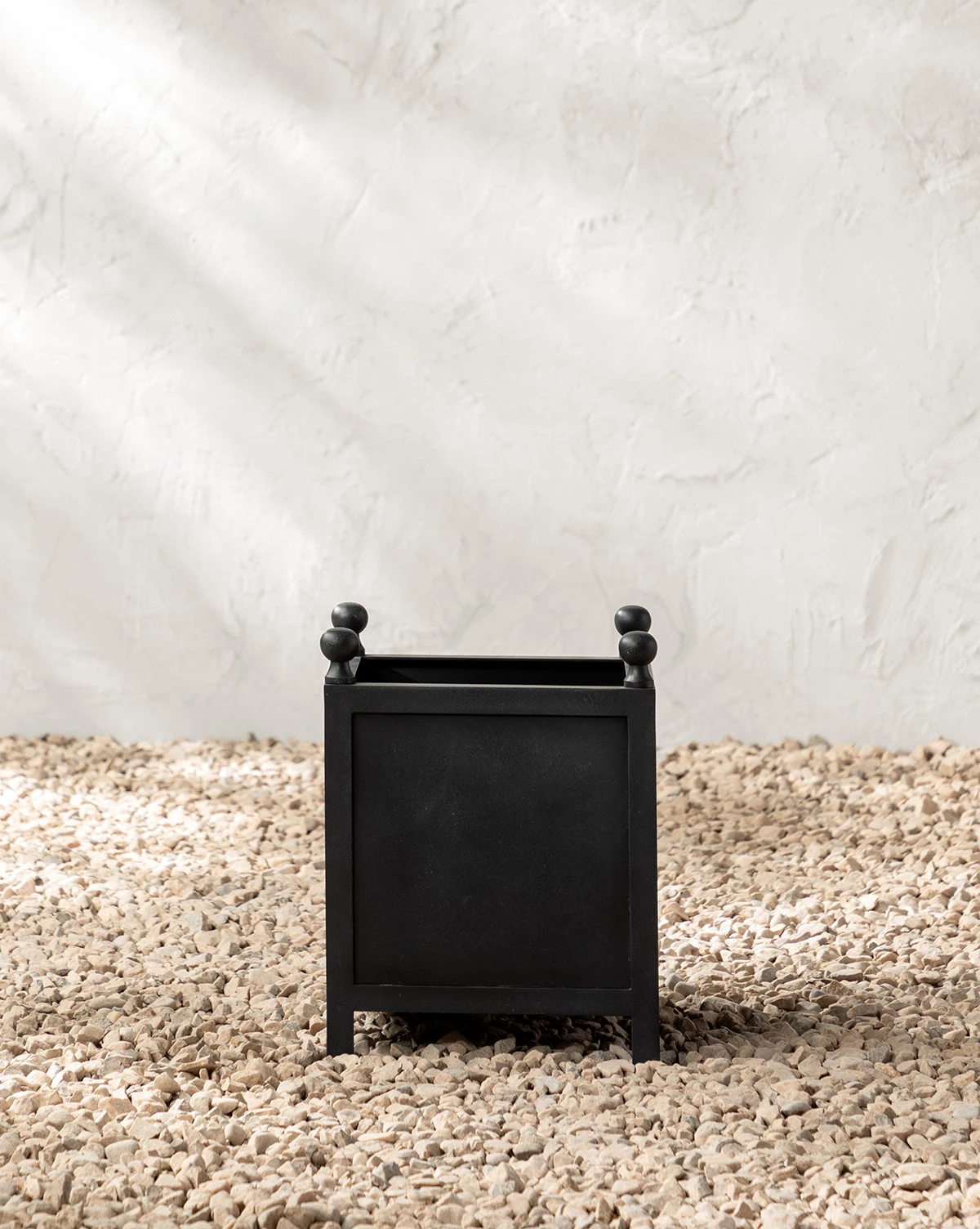With a bold finish and geometric shape, the Clariance Planter brings intrigue and elegance to your decor. Made from aluminum with a dark finish, the playful details of the metal planter add function to your outdoor styling.Â