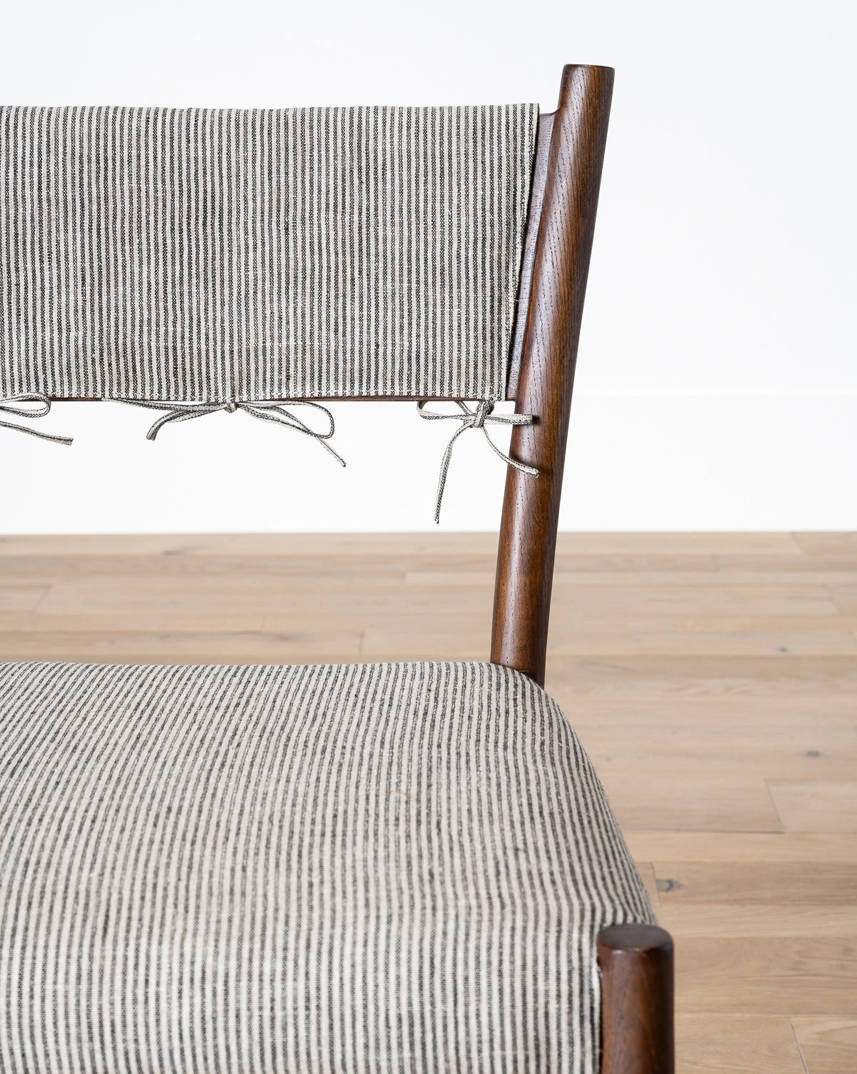 Artfully designed in a deep, rich brown, the Crawford Chair has delicate tie details that give this dining piece a feminine touch. Complete with an upholstered seat, the Crawford Dining Chair has a timeless appeal that brings grace to your living spaces.