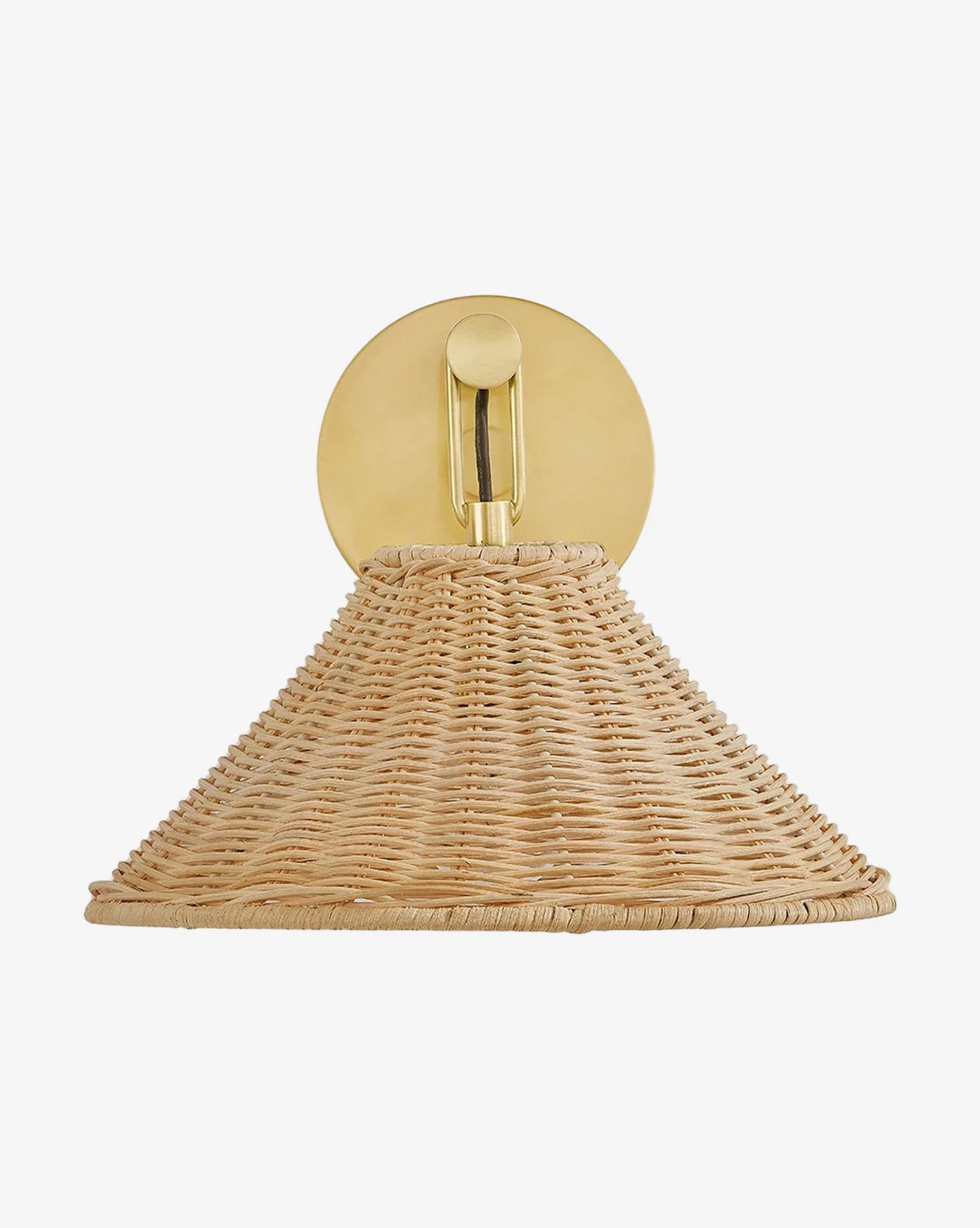 Featuring a streamlined yet organic tapered shade woven from natural rattan, the Dalia Sconce features a back plate with a striking aged brass finish. Seamlessly blending modern shapes with textural materials, this sconce brings an organic, airy tone everywhere from hallways to bedrooms.