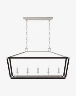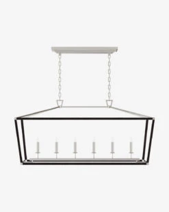 The Darlana Linear Lantern is inspired by the traditional lantern but given a modern update. Sleek lines and rattan, with a suspended candelabra, details make for an ideal contemporary pendant for the entryway, dining, or kitchen area.