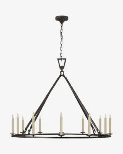 The Darlana Single Ring Chandelier is inspired by the traditional chandelier but given a modern update. Sleek lines and an open frame holding candelabra lights make for a contemporary pendant for the entryway, dining, or kitchen area.