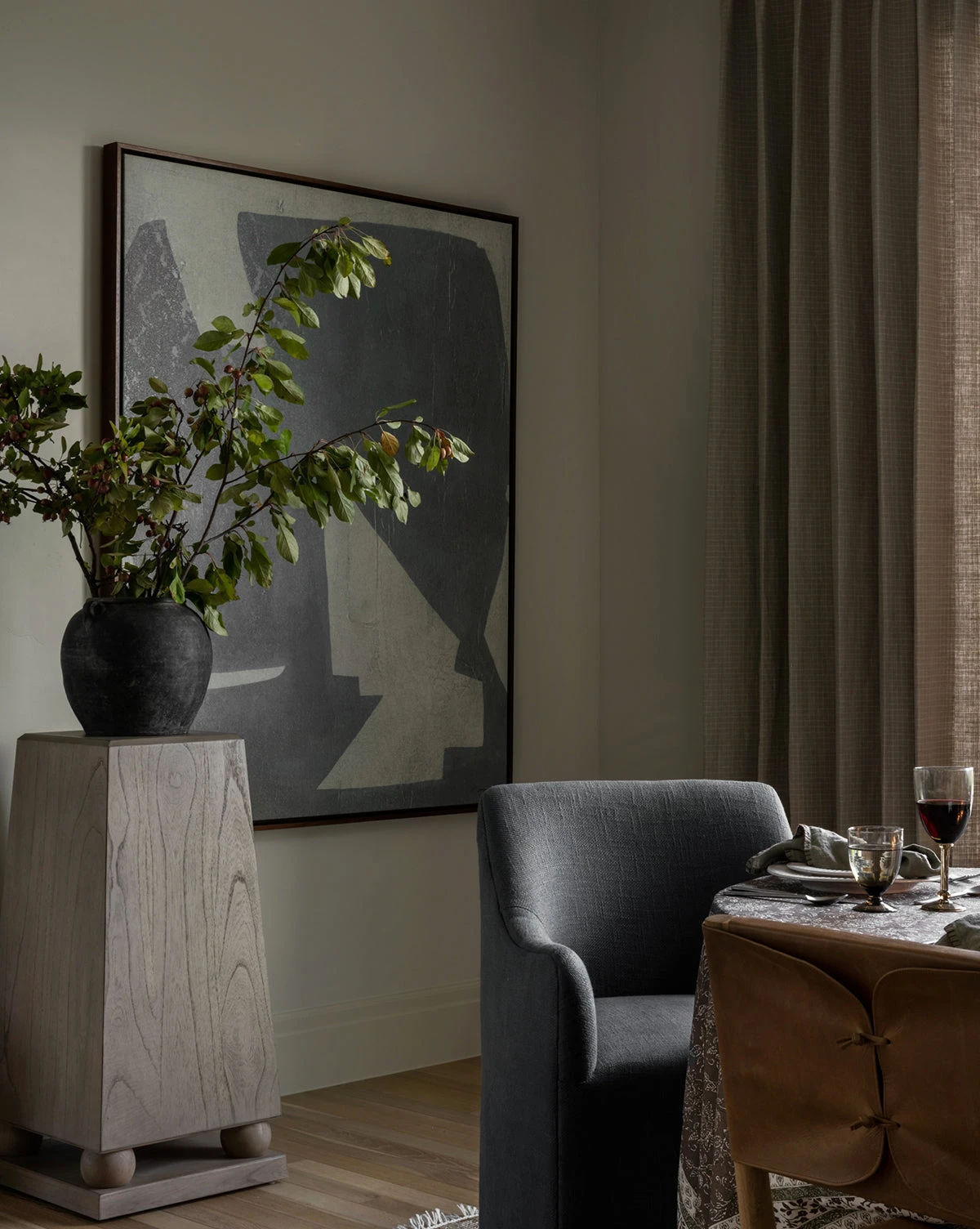 With natural details and contemporary form, the Delaney Pedestal is a subtle accent for seating vignettes or living rooms. The wood graining and neutral finish give the pedestal an organic feel, while its tapered structure and framed bun feet bring dimension and intrigue however the piece is styled.