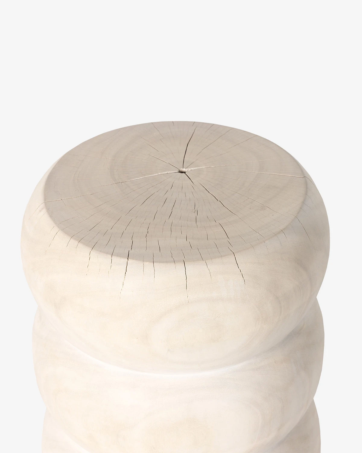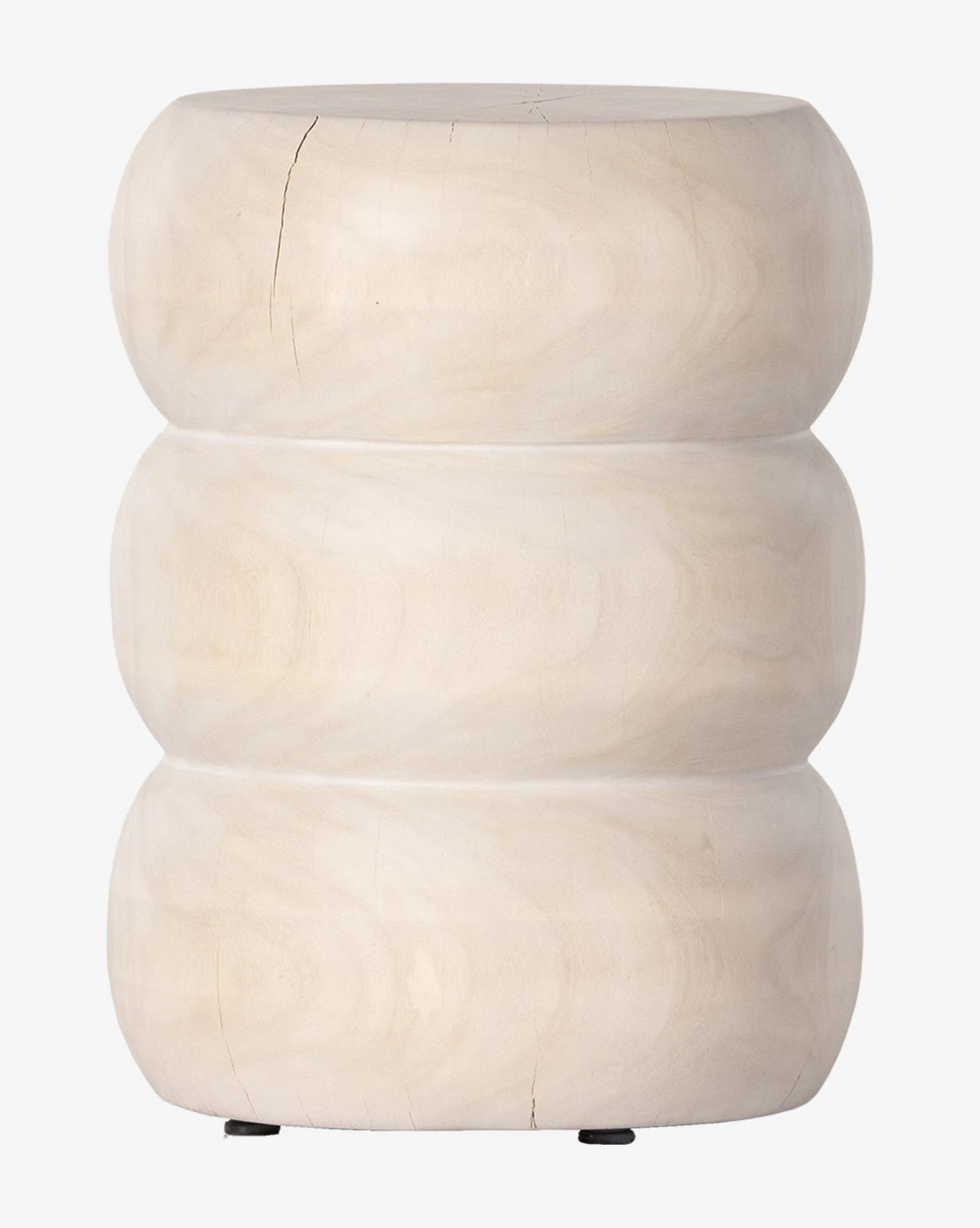 The natural details of reclaimed wood are accentuated in the sculptural design of the Derry Side Table. Playing with shape, the hand-carved piece is suited for both practical use and for styling vignettes next to a sofa.