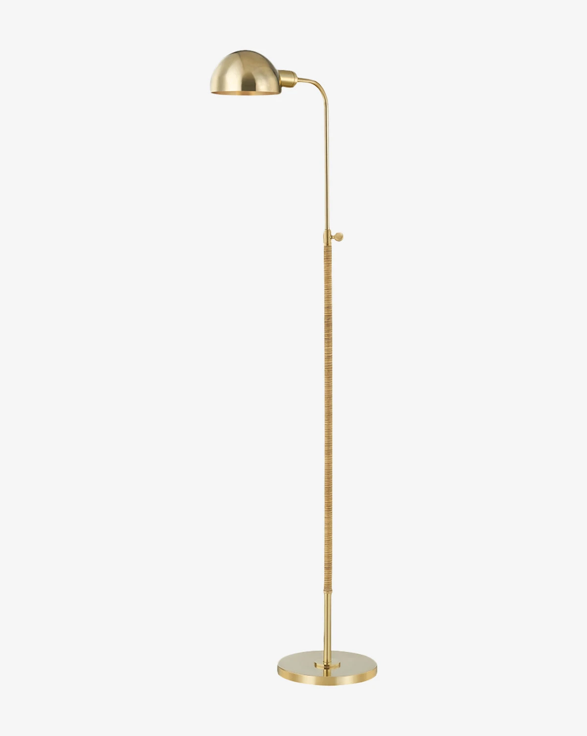 A metal shade finished in aged bronze is supported by a brass and rattan base in the Devon Floor Lamp. This modern take on tradition makes this lamp a beautiful accent in any corner, and its natural materials effortlessly lend a subtle, organic touch to the room.
