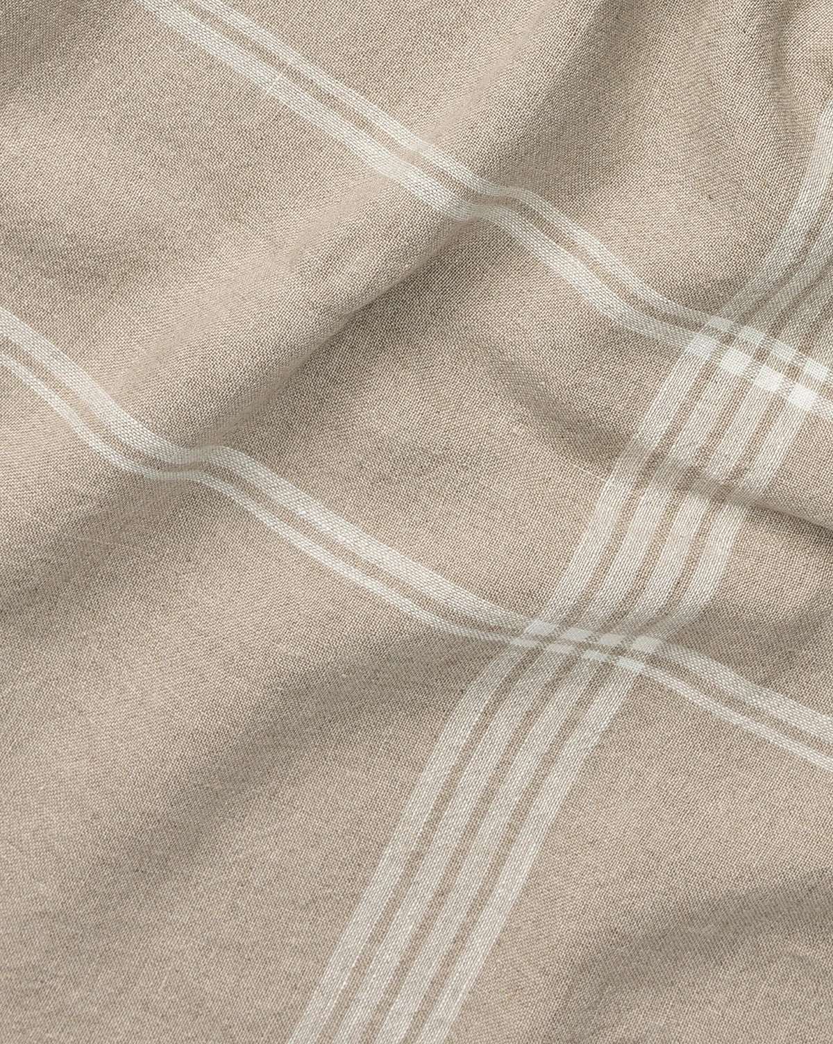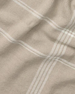 Both neutral and playful, the Duncan Linen Tablecloth is made from 100% linen. Its soft and light texture boasts intentional craftsmanship, with a fringe border detail. The minimal white patterned plaid against the stone linen creates a calming and refined aesthetic for your table setting.