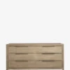 Elevated in both style and design, the Eisley Dresser makes a statement in your bedroom with its white-finished mahogany form and leveled up base. Its bleached burl drawer fronts are laid in a patchwork design, cut and placed by hand, and finished with a push-latch open for a clean, seamless look.