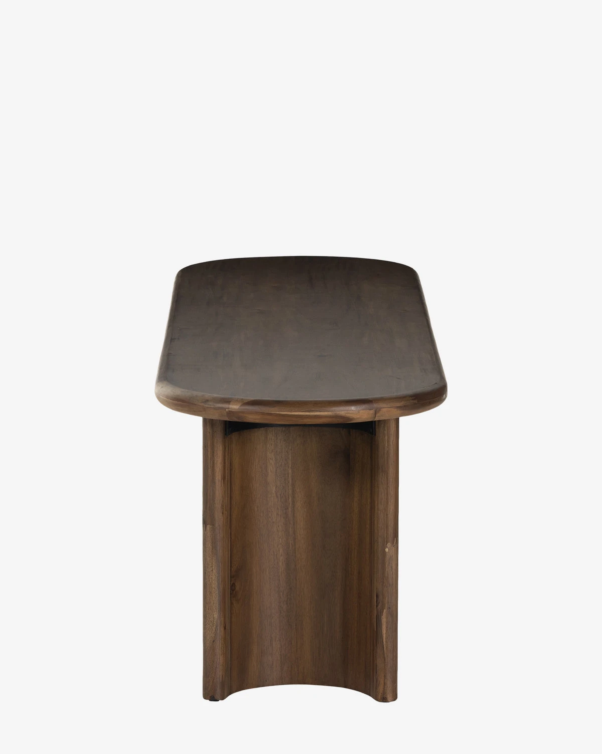 Crafted from acacia wood, the Eleazar Dining Bench is a study in shape. With crescent-shaped legs that support the smooth, oval top, the dining bench brings its stately organic presence to your space. The coffee table is available in a rich brown finish.