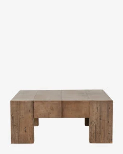In a rustic wormwood finish, the Elias Rectangular Coffee Table boasts a creative, contemporary design. Its thick-cut oak veneer structure makes a sculptural piece that features sophisticated dovetail joinery, seamlessly elevating your living space.