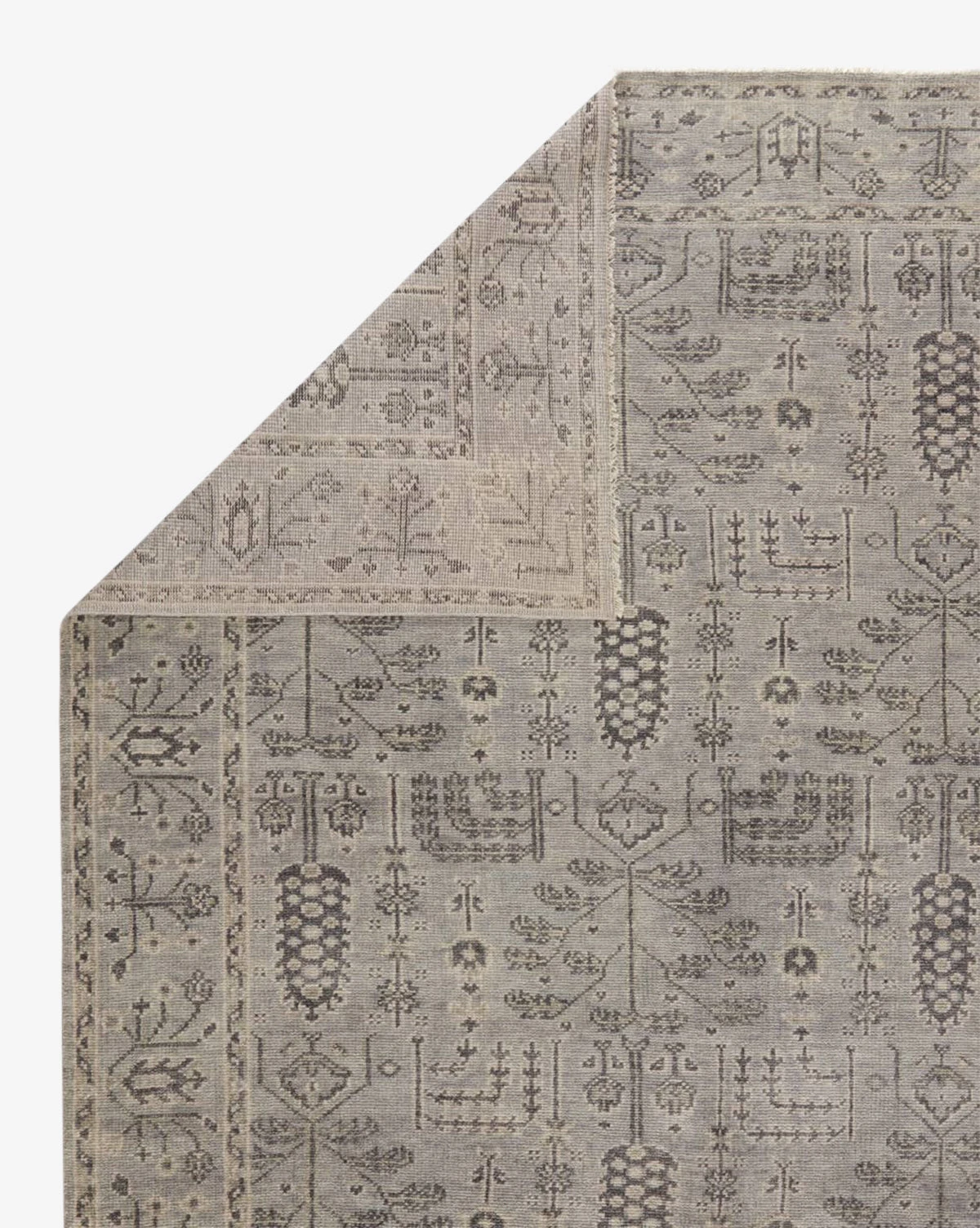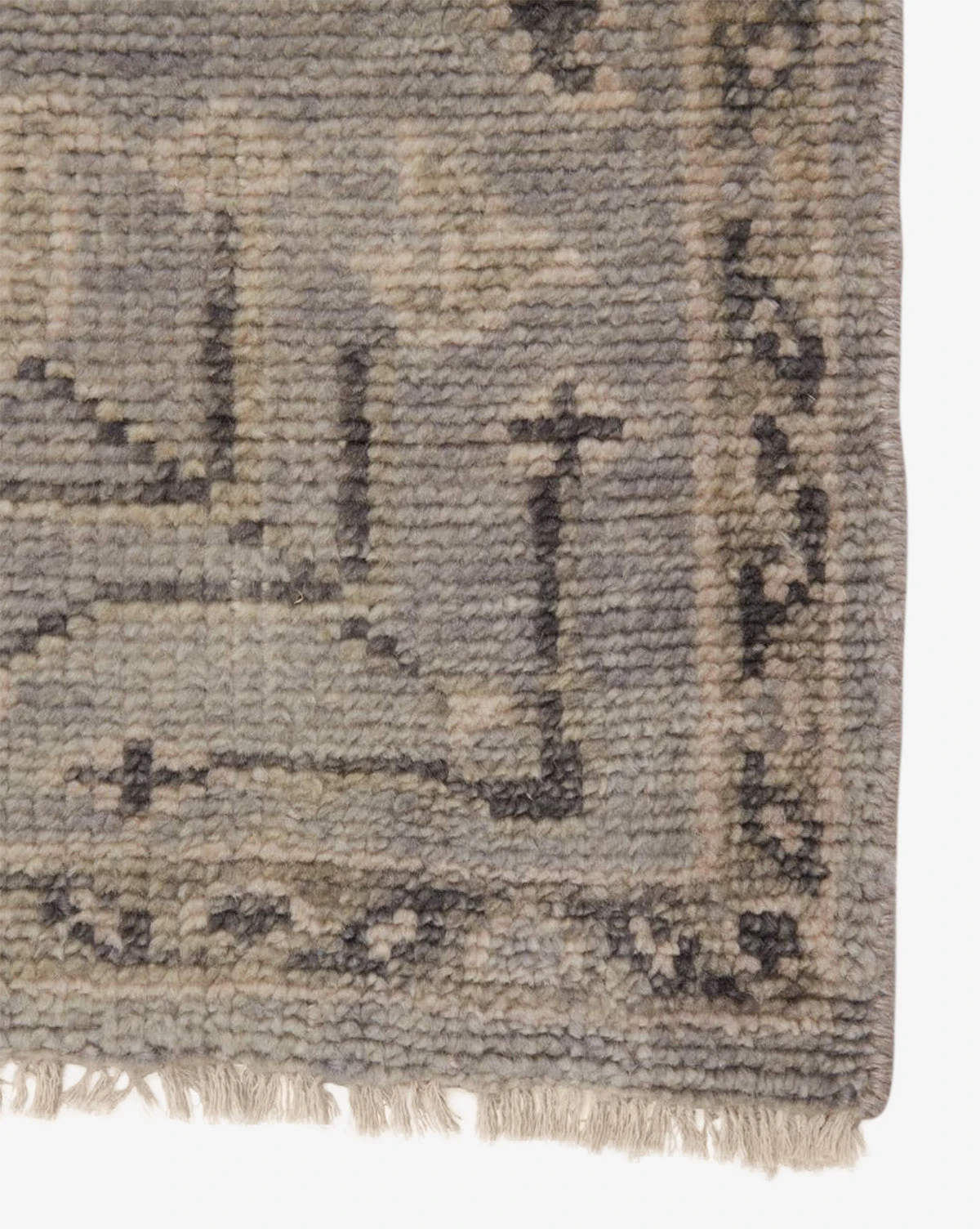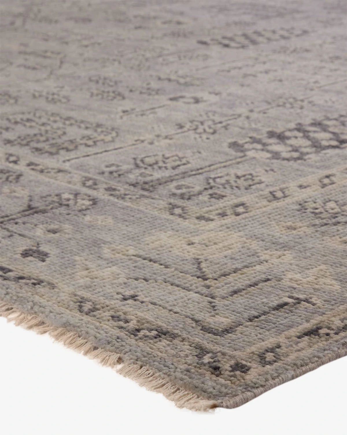 Boasting an aged, sun worn feel, the Elmont Hand-Knotted Wool Rug uses vintage motifs and a tonal palette to create a transitional statement that grounds your space. With an intricate pattern hand-knotted in wool, this artisan rug is soft and durable with details that accentuate its distressed, contemporary aesthetic. Â