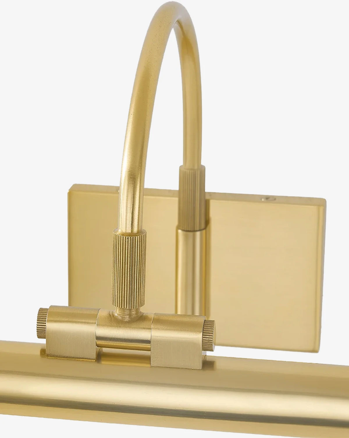 In a sleek form, the Elowyn Picture Light reinvents traditional style with your choice of beautiful finish. Featuring intentional details, the slim shade is complemented by a curved arm and simple backplate.