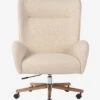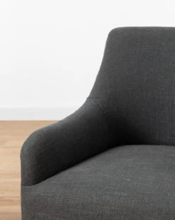 Dramatic and poised, the rolling Elton Office Chair brings elegance to the office. With a linen blend upholstery in an off-white or ink colorway, its back fluidly extends into its armrests using sophisticated lines, creating an elongated look and elegant feel.
