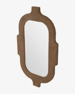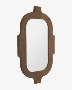 Featuring a captivating silhouette inspired by Indian architecture, the Elysia Mirror infuses any space with a sophisticated natural warmth. Â Wrapped in tobacco-stained abaca rope, it is rich with texture and organic character. Designed to be displayed vertically or horizontally, this piece offers versatility and timeless beauty to your home styling.Â