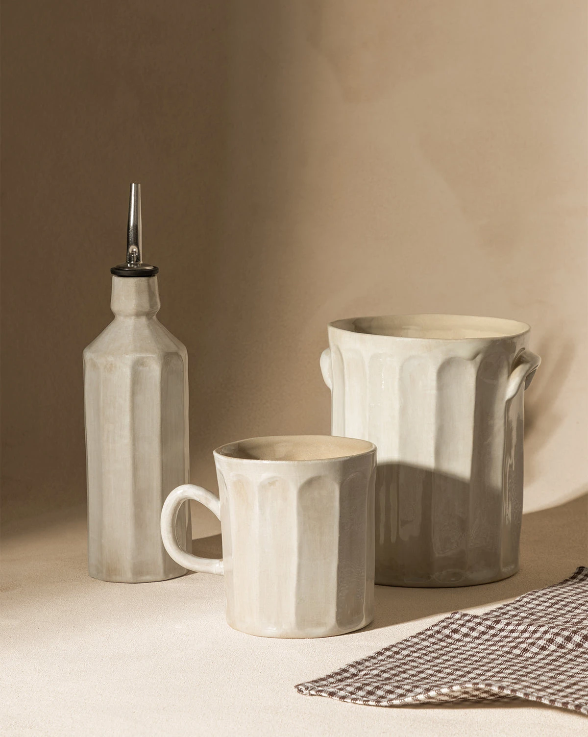 The Emilia Cruet has a simple yet elevated design. Crafted from gray stoneware with a transparent glaze, the cruet is a practical addition to your kitchen countertop for oil or vinegar. Â
